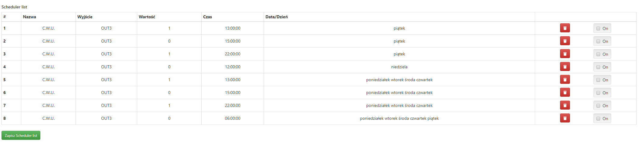 Następny bug? W momencie zapisu schedurela następuje zwis LK3 i restart. Mam 8 wpisów wyłączonych. Po włączeniu czterech i próbie zapisu dzieje się to co napisałem restart. Po restarcie jest tylko 7 wpisów.