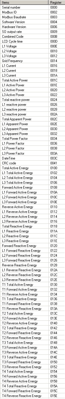 Dla chętnych w załączeniu plik z konfiguracją rejestrów dla miernika energii ORNO OR-WE517 (część najbardziej użytecznych) oraz pełna mapa rejestrów.