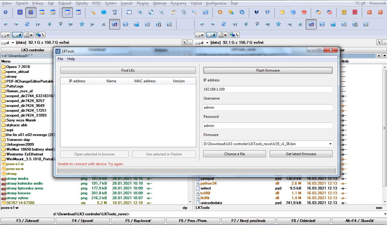 LK3 odpowiada na ping, ale przy próbie przepisania oprogramowania za pomocą LKTools nadal pisze:"Unable connect with device. Try again"