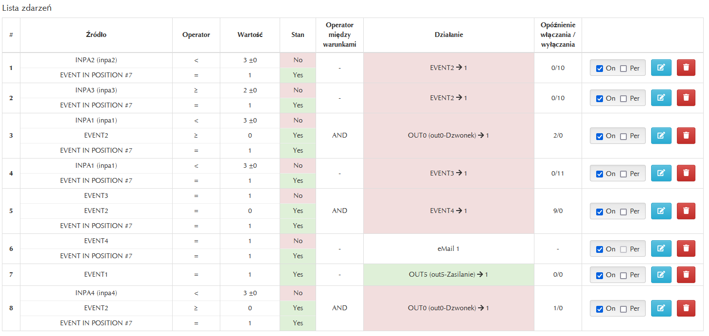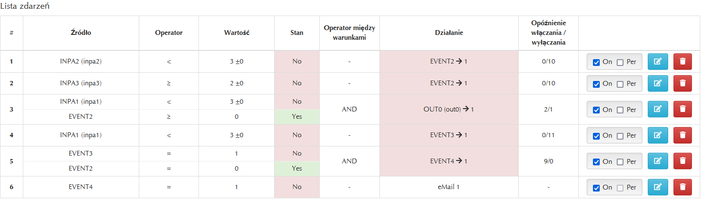 Założenie jest takie że INPA2 lub EVENT2 blokuje działanie INPA1 na określony czas i działa to tak jak oczekuję.