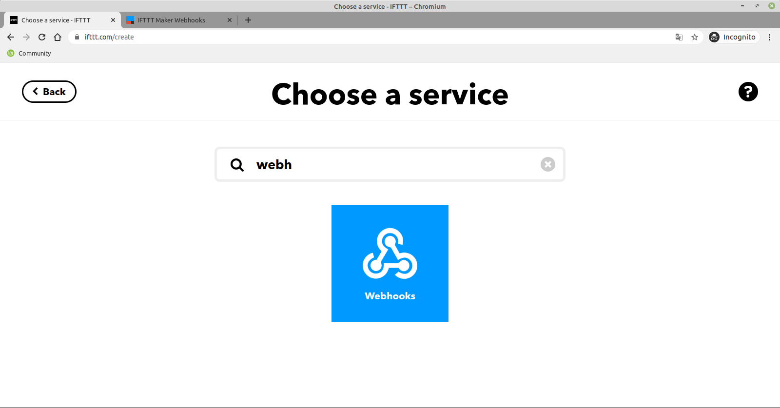 - w IFTT tworzymy aplet, w którym jako IF wybieramy Webhooks.